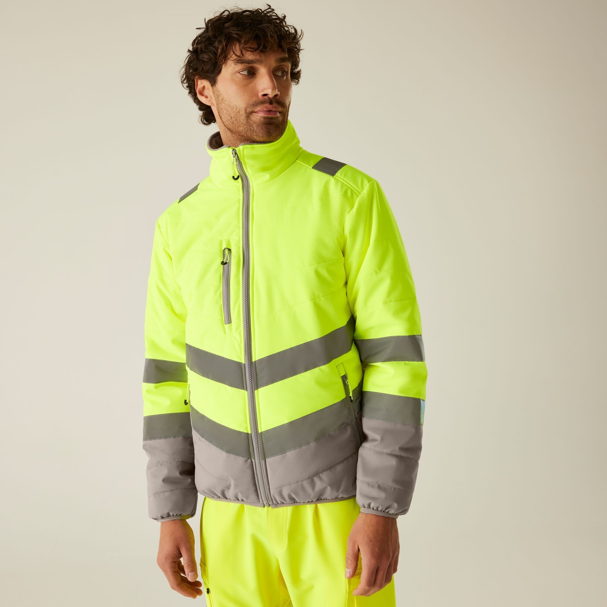 Regatta yellow high visibility two tone thermal waterproof work jacket TRA943