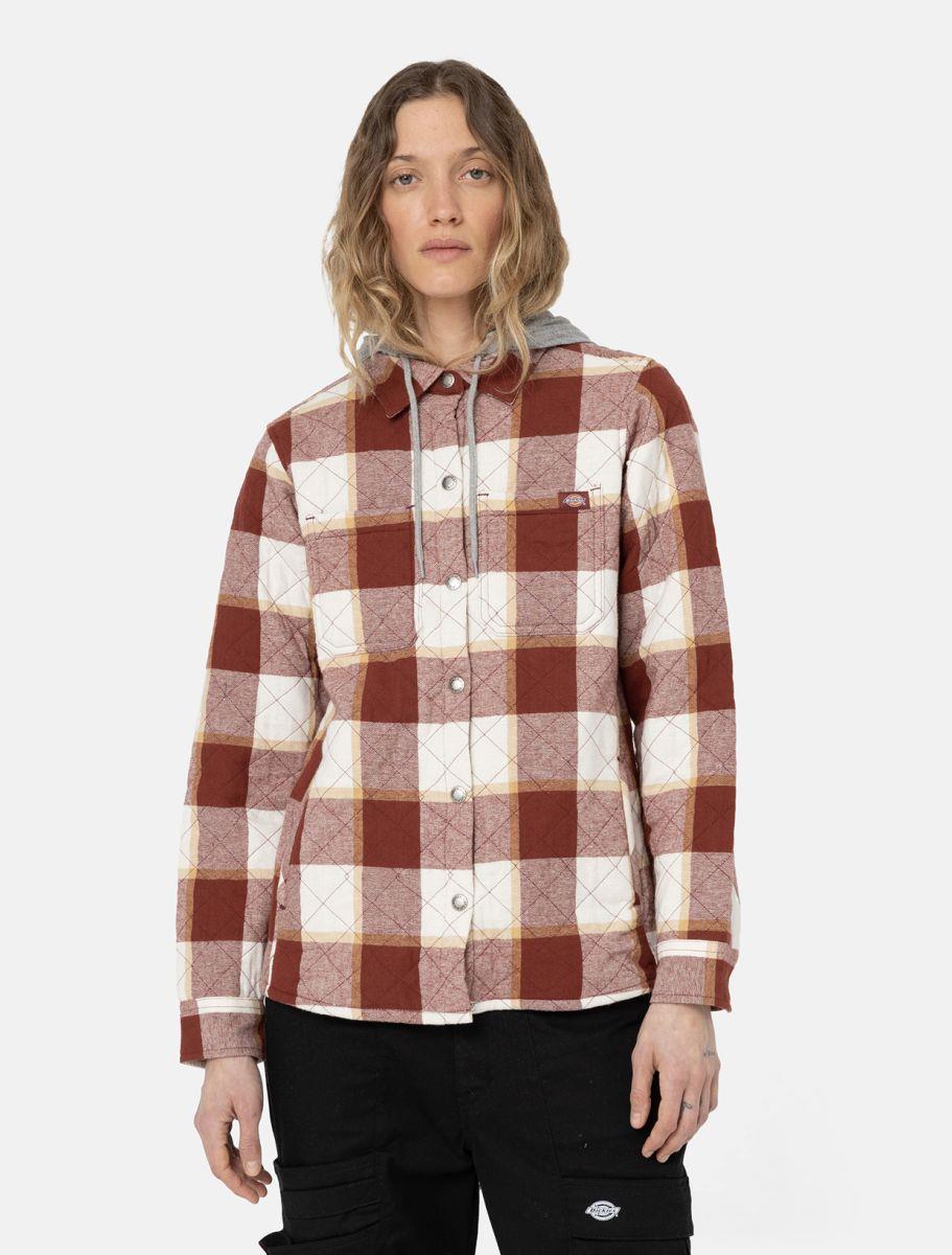 Dickies fired brick women's flannel fleece-lined hooded shirt jacket