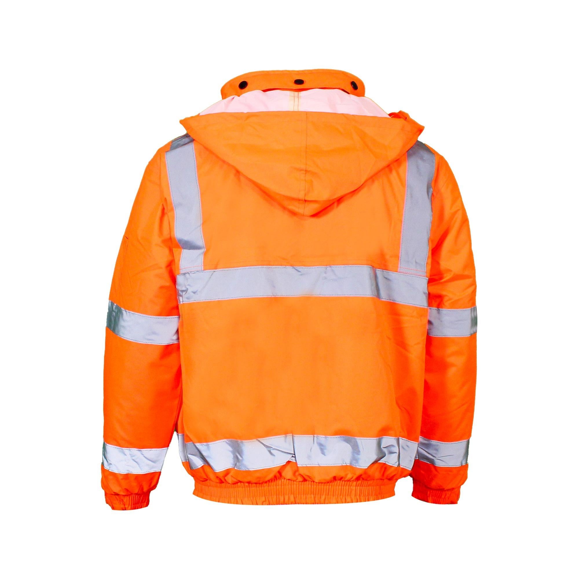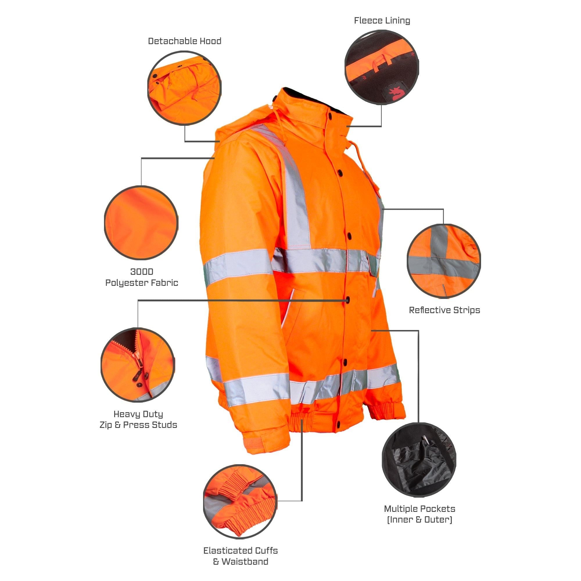 Introducing our Hi Vis Bomber - Fleece Lined, a reliable and high-visibility garment designed to provide warmth, comfort, and visibility in challenging work environments. This bomber jacket is made from 300D polyester fabric with a PU coating for enhanced durability and water resistance.