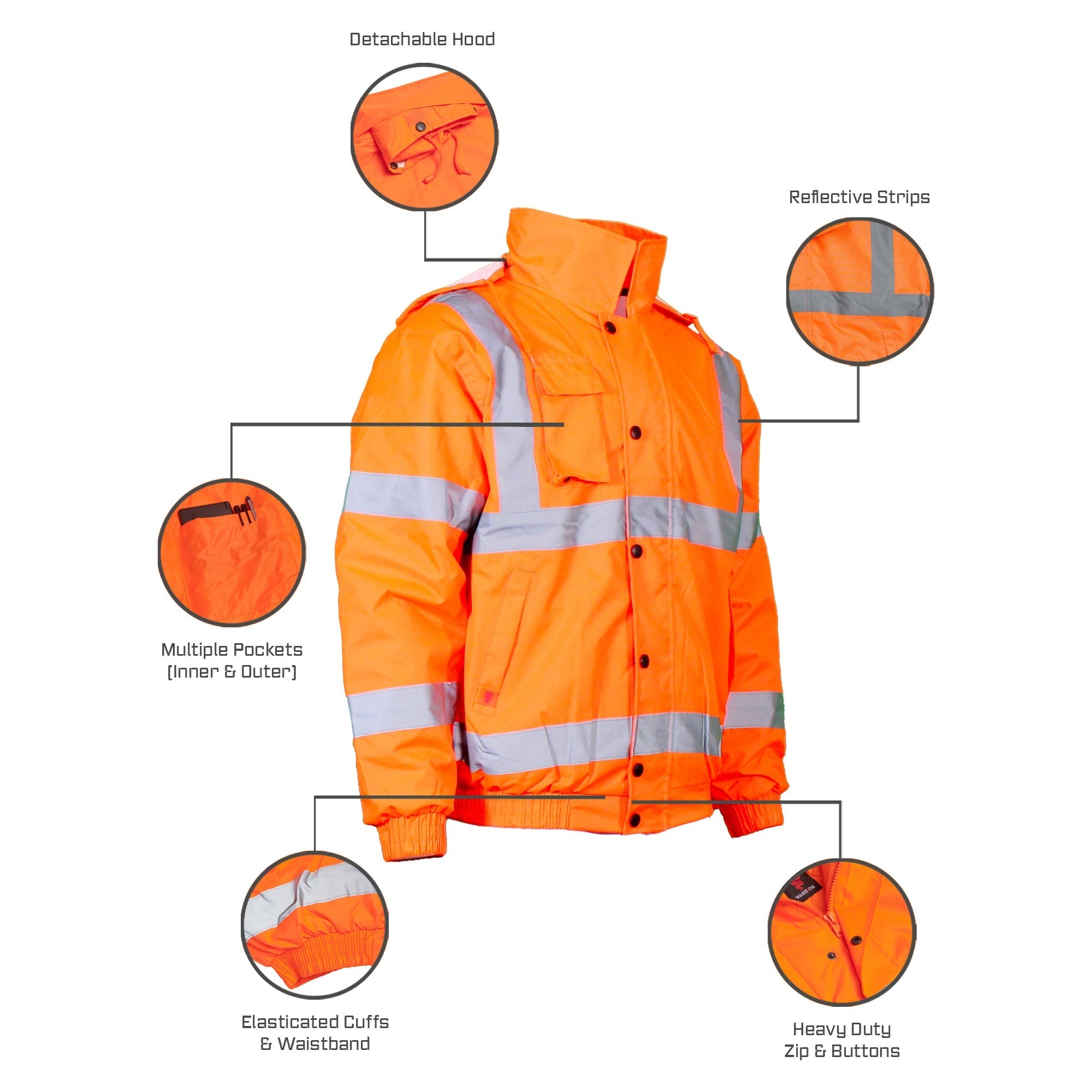 Introducing our Hi Vis Bomber, a reliable and high-visibility jacket designed to keep you visible, protected, and comfortable in challenging work environments. This bomber is packed with features to meet your safety and functionality needs.