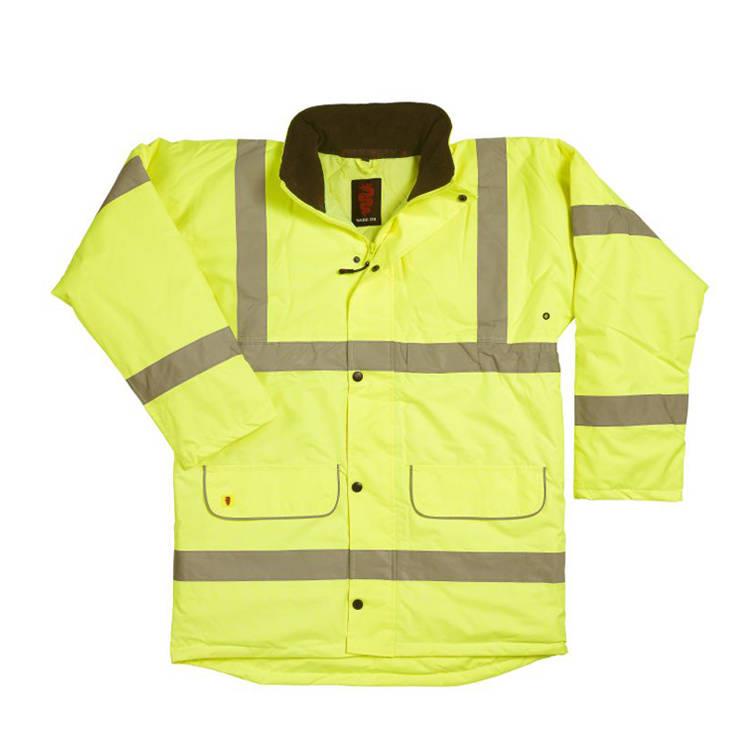 Warrior yellow hi-viz waterproof fleece lined collar motorway traffic coat