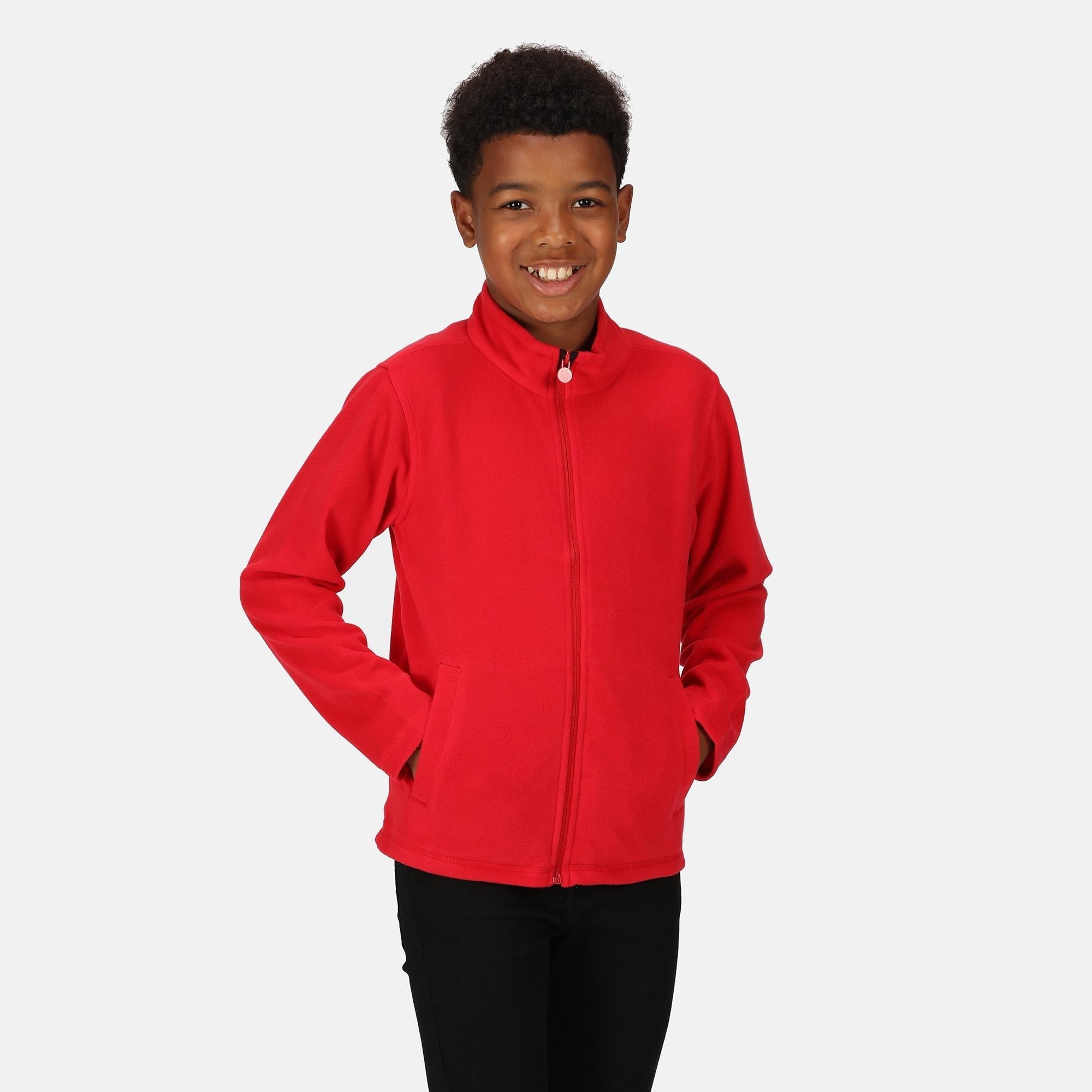 This Regatta fleece features a full zip, offering the perfect layering choice. The kid's fleece is crafted from a lightweight fabric, providing warmth without the bulk. The full zip fleece has an excellent wicking performance, helping to keep the wearer dry. It's quick-drying, too - ideal for an unexpected downpour! The two lower fleece pockets are perfect for keeping little hands warm. Kids can wear the fleece open with mid-layers or zip it to the top for complete protection.