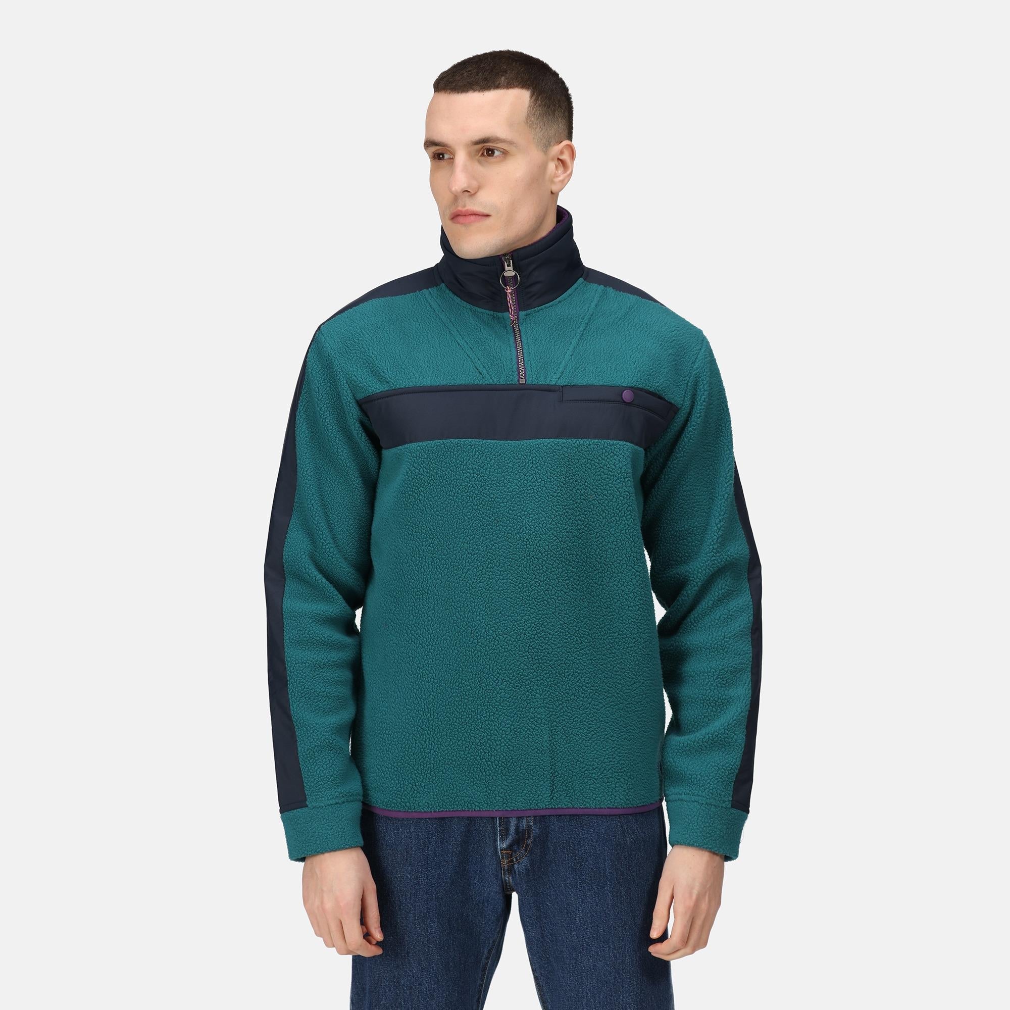 Regatta Vintage spruce/navy men's half-zip high-pile Borg fleece #TRF671