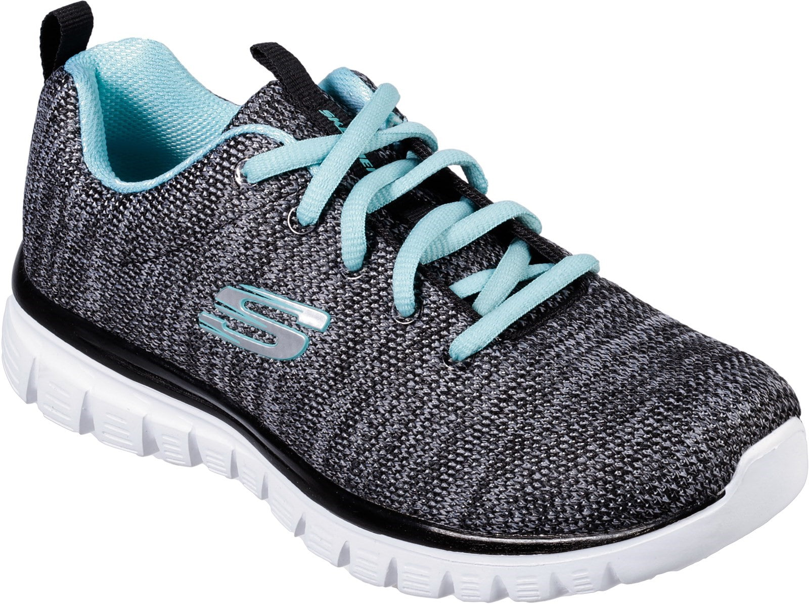 Skechers Graceful Twisted Fortune women's black/turquoise vegan trainer #SK12614