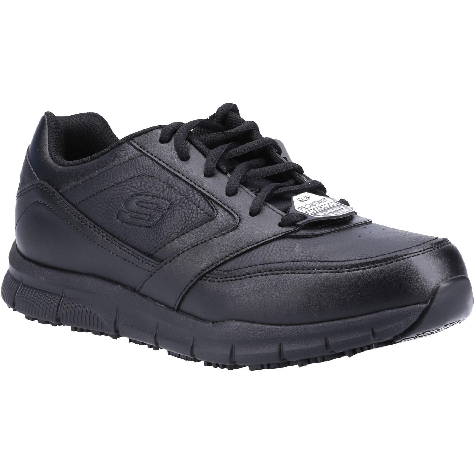 All the safety, style and comfort you need for your day comes in the SKECHERS Work Relaxed Fit®: Nampa SR shoe. Smooth leather-textured synthetic upper in a lace up sporty casual comfort work slip resistant sneaker with stitching accents and Memory Foam insole.
