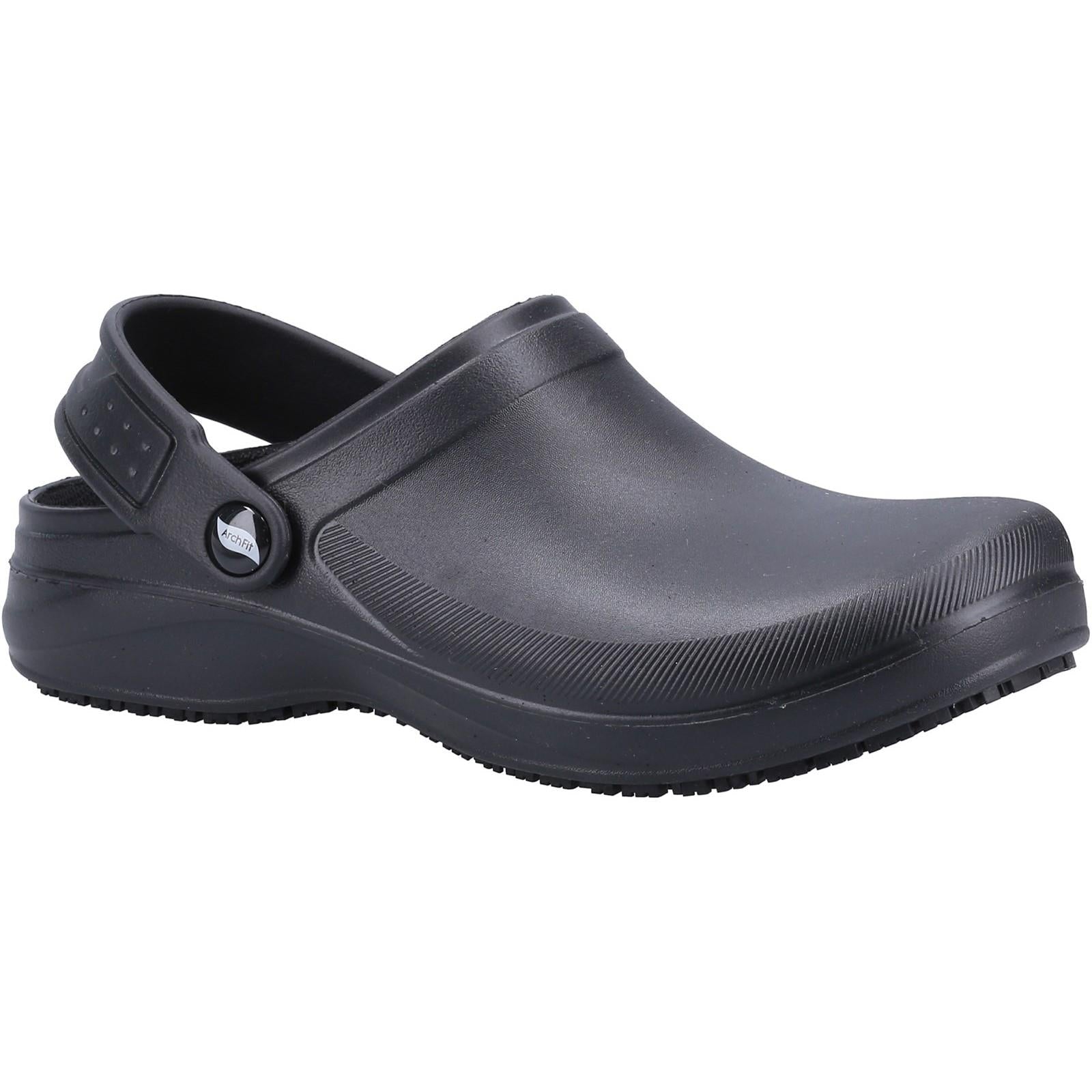 Slip on supportive comfort before starting on your prep work with the Skechers Work Arch Fit: Riverbound - Pasay SR clog. This slip-resistant clog features a sculpted flexible EVA upper with an Arch Fit footbed and a convertible heel sling strap.