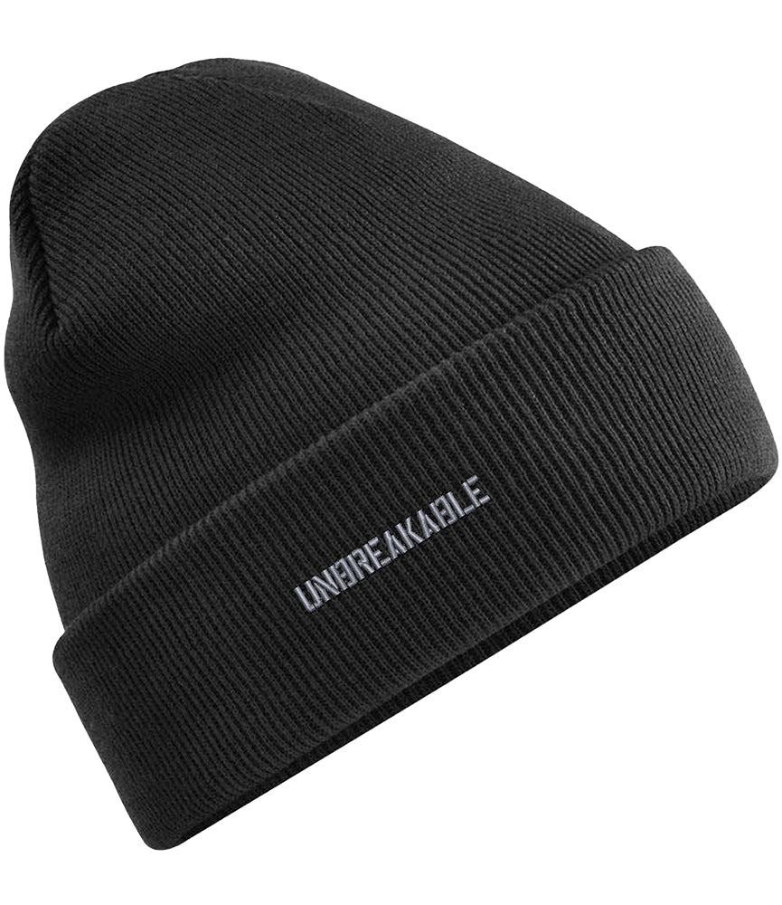 Unbreakable U306 Black Beanie with grey 'Unbreakable' logo.