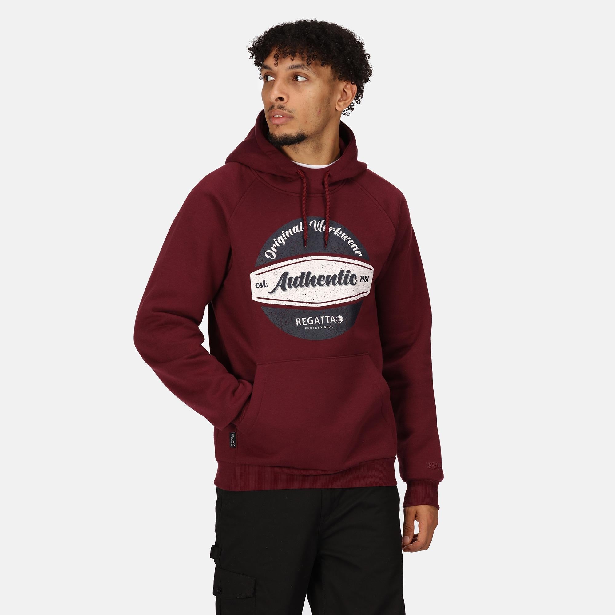 Regatta Original burgundy men's hooded sweatshirt workwear hoodie #TRF700