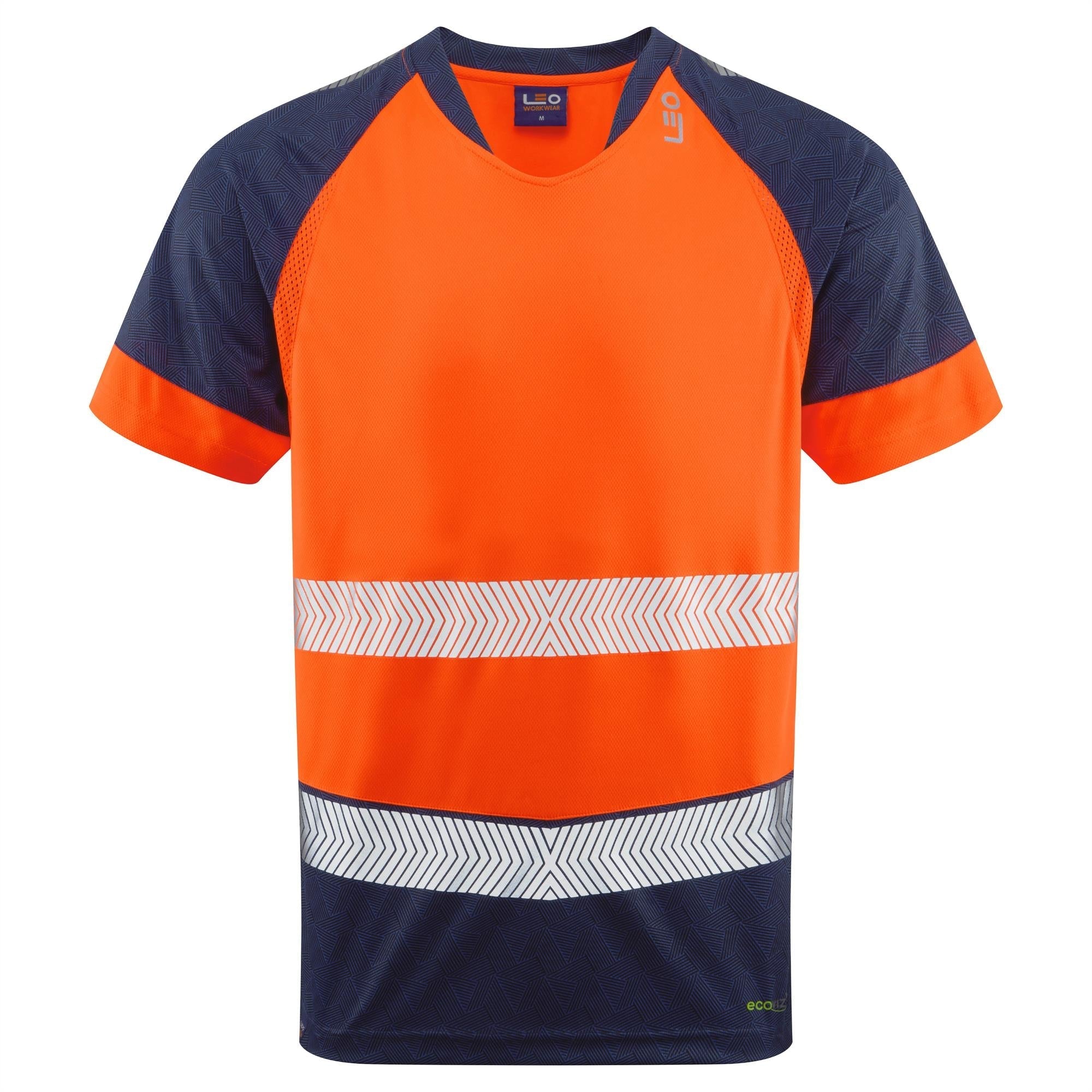 Leo Forda EcoViz orange navy contrast high visibility work t-shirt #T16