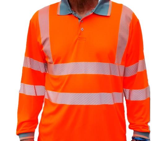 High visibility orange Rail long sleeve UPF40 segmented tape polo shirt