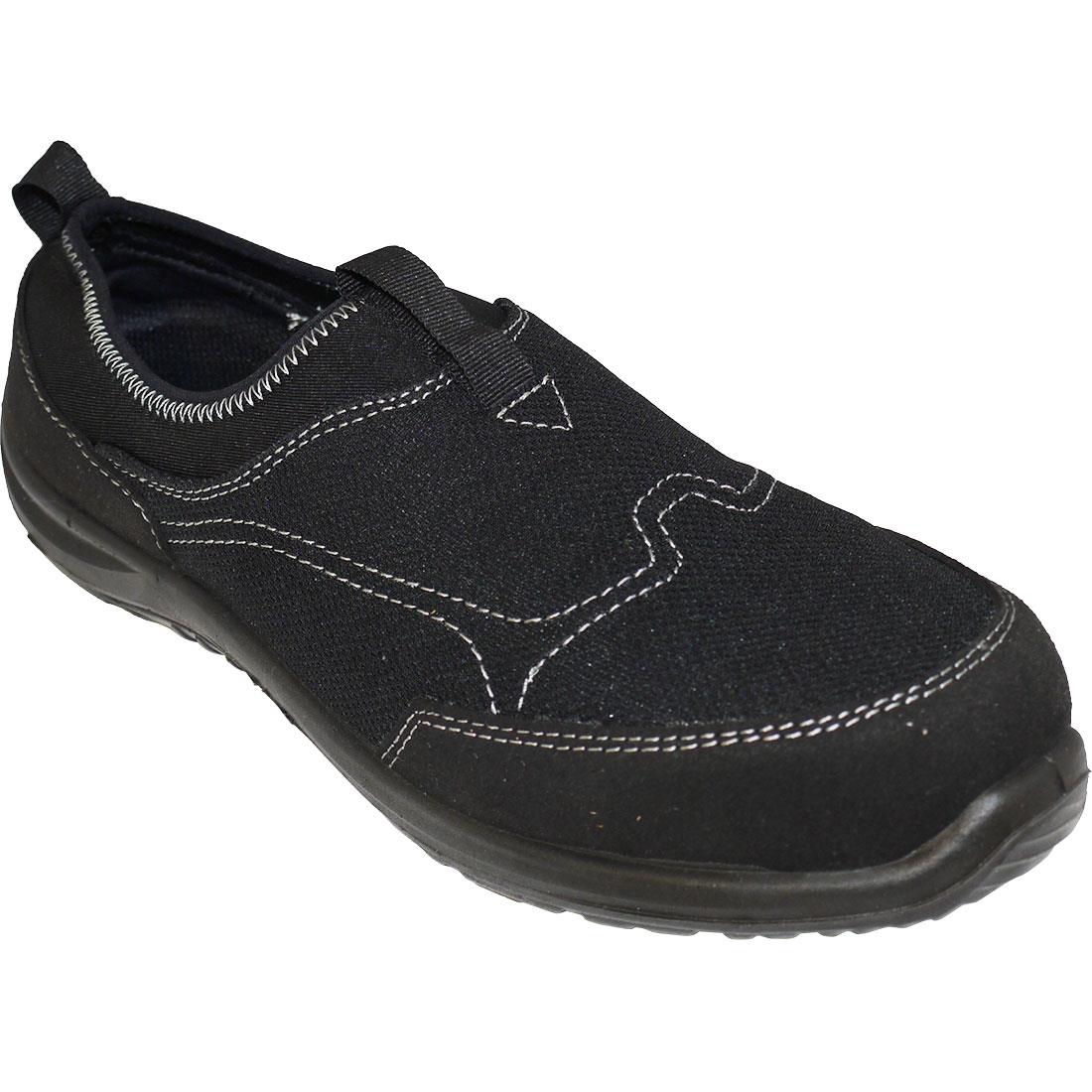 Slip on safety trainer S1P SRC, suitable for both men and women. Highly versatile and suitable for various working professionals including warehouse operatives, forklift drivers, logistics & transport workers, plumbers and tradesmen. Additional features include steel toecap and polyester upper for superior breathability.