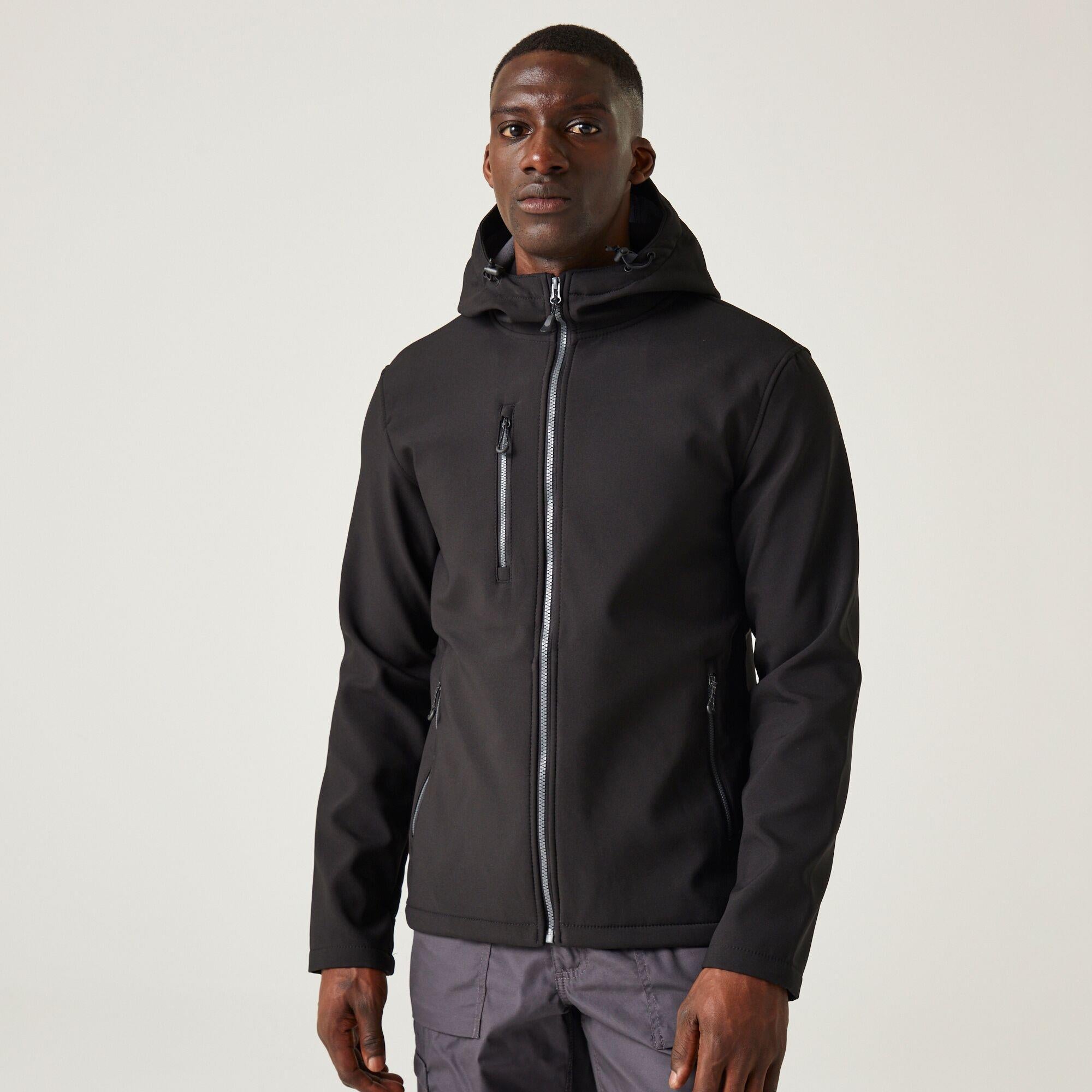 Regatta Navigate black/grey men's fleece-lined hooded softshell jacket #TRA705
