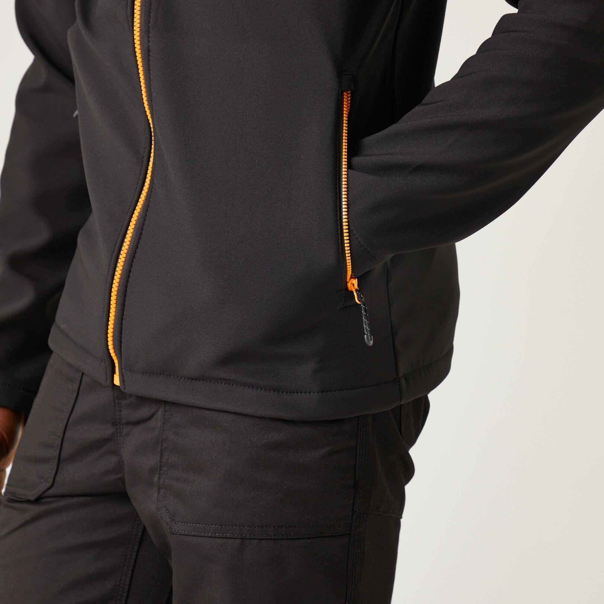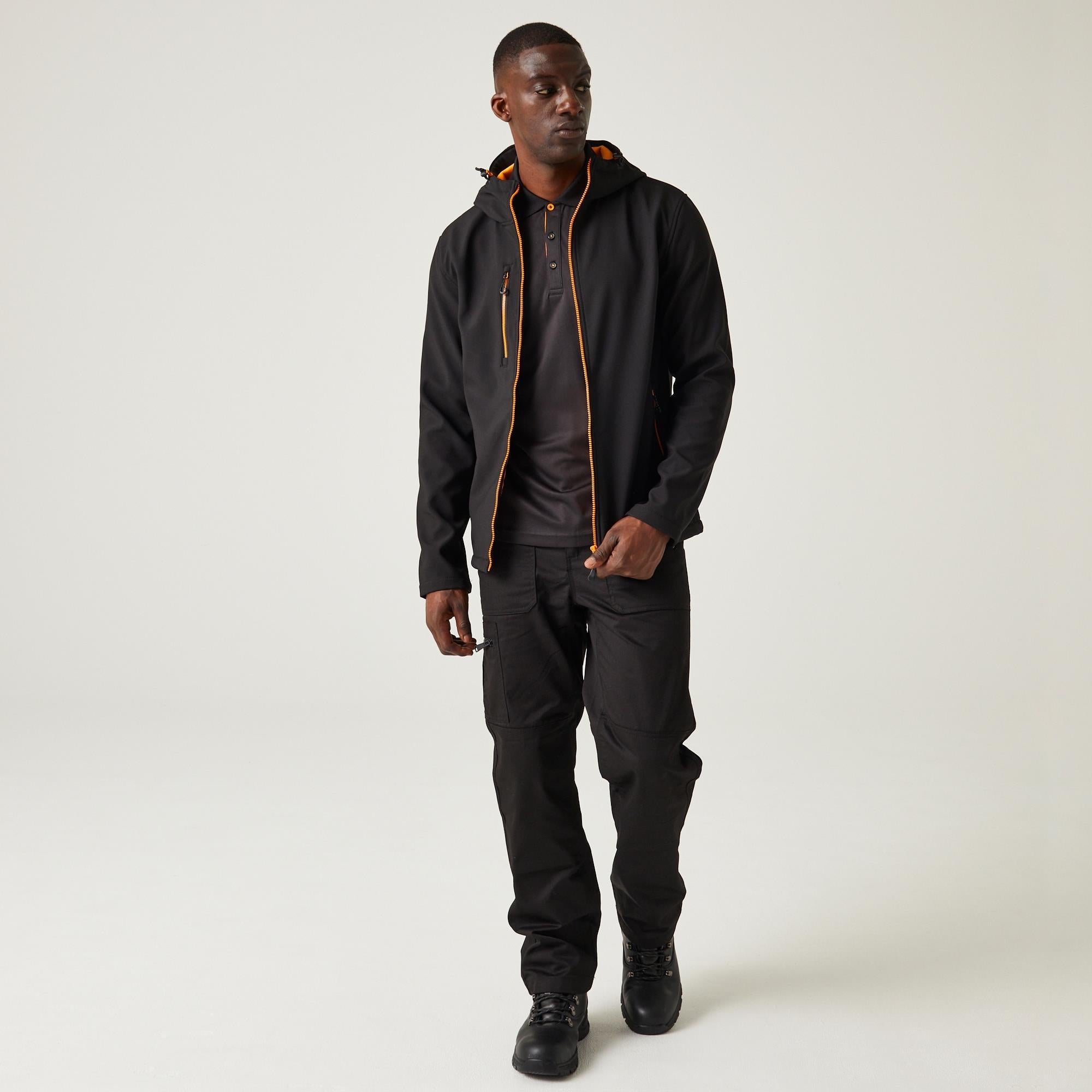 Regatta Navigate black/orange men's fleece-lined hooded softshell jacket #TRA705
