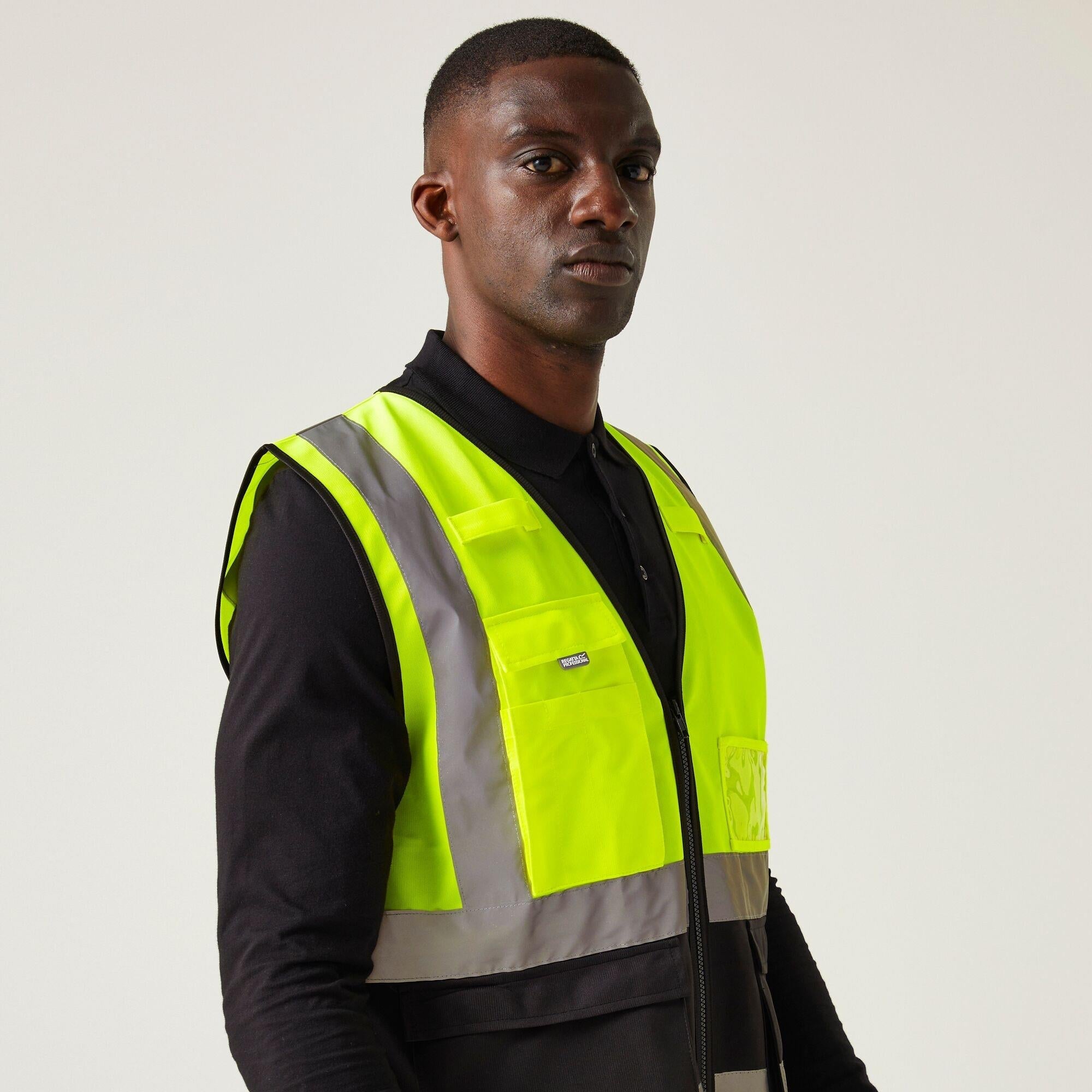 Regatta Pro Executive yellow/black hi-vis unisex zip-front multi-pocket waistcoat #TRS251