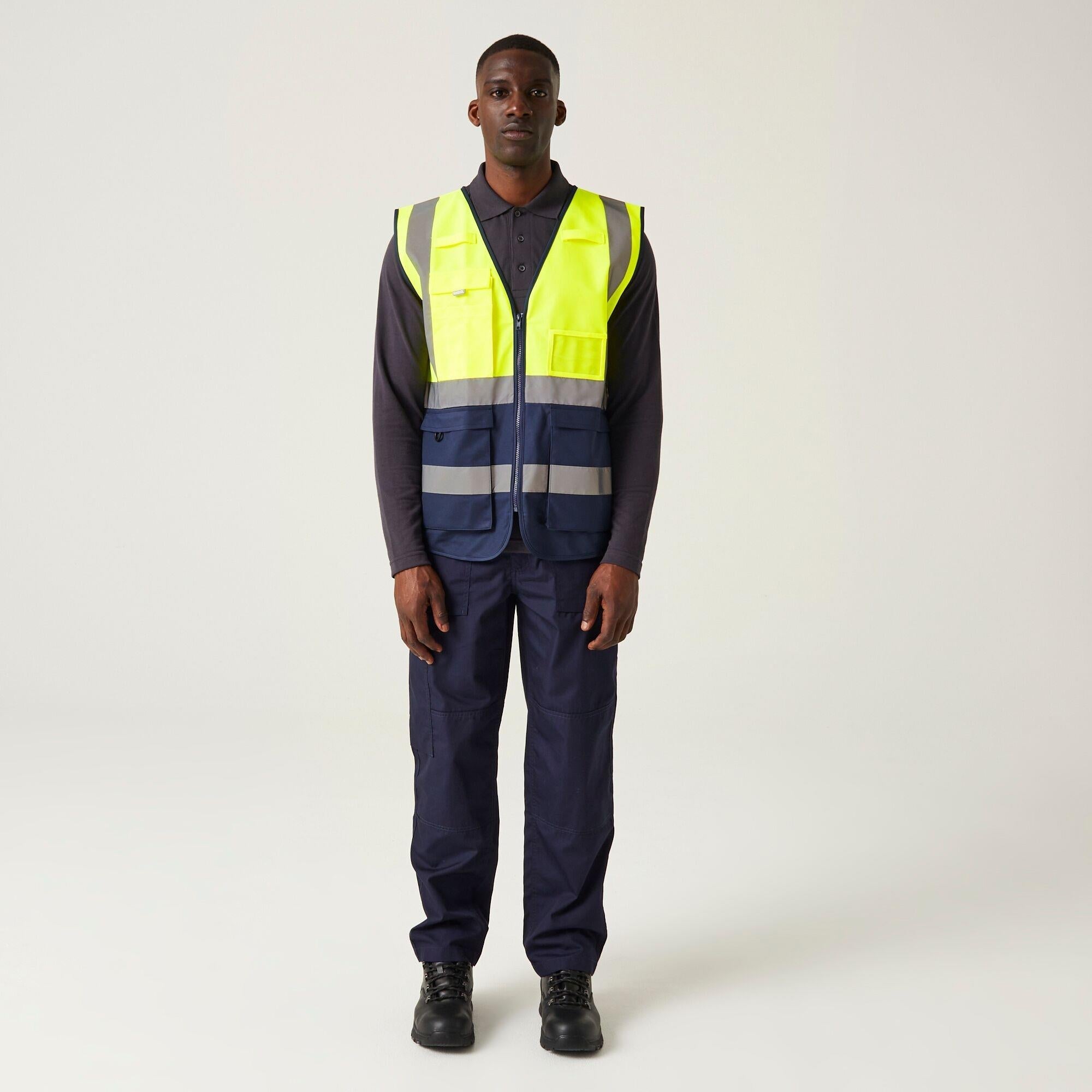 Regatta Pro Executive yellow/navy hi-vis unisex zip-front multi-pocket waistcoat #TRS251