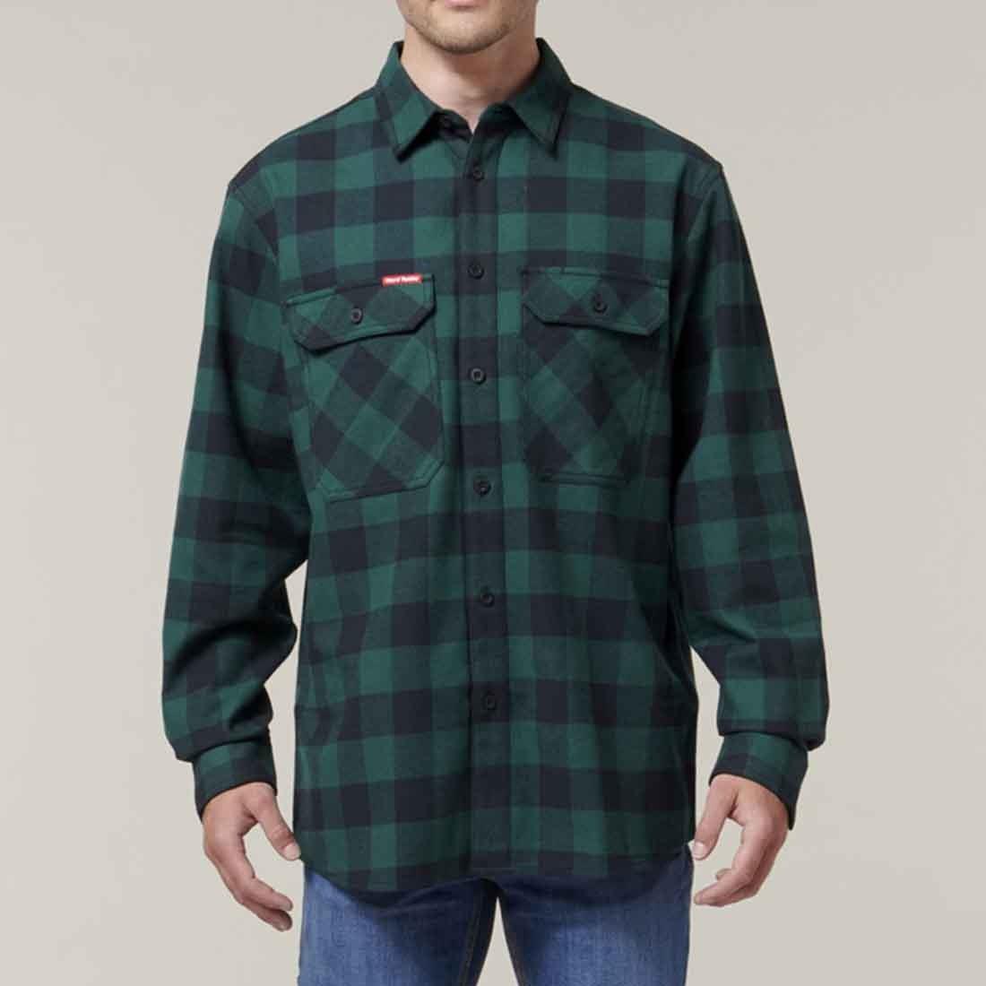 Hard Yakka green check cotton long-sleeve flannel work shirt