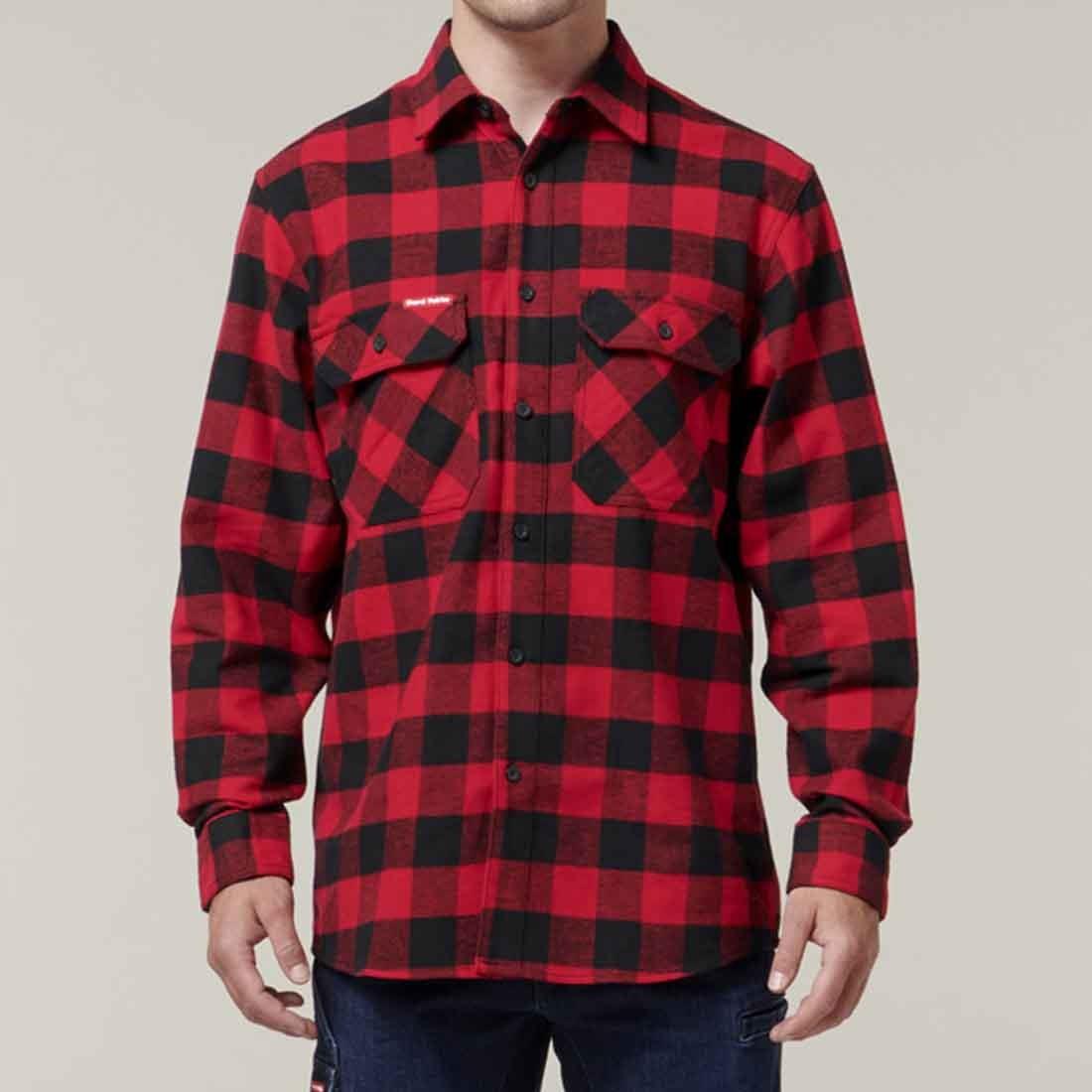 Hard Yakka red check cotton long-sleeve flannel work shirt