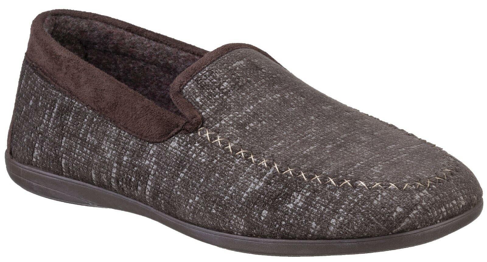 Cotswold Stanley men's brown microfibre slip-on classic slipper