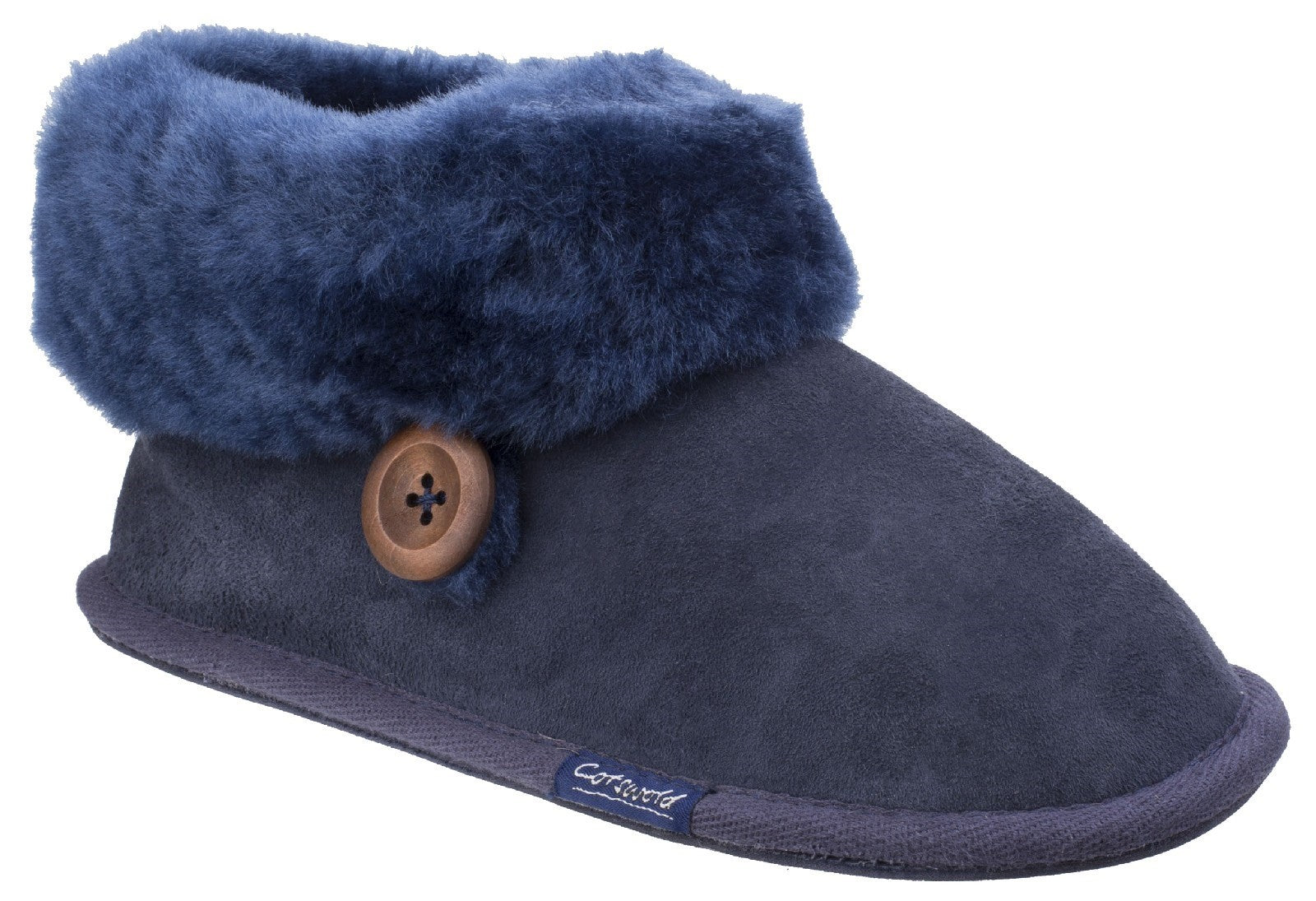 Cotswold Wotton women's blue suede sheepskin bootie slipper