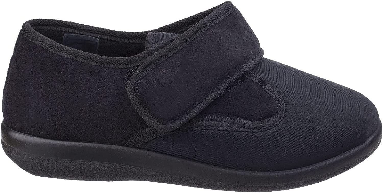 GBS Frenchay unisex black touch-fasten adjustable extra wide-fit medical slipper