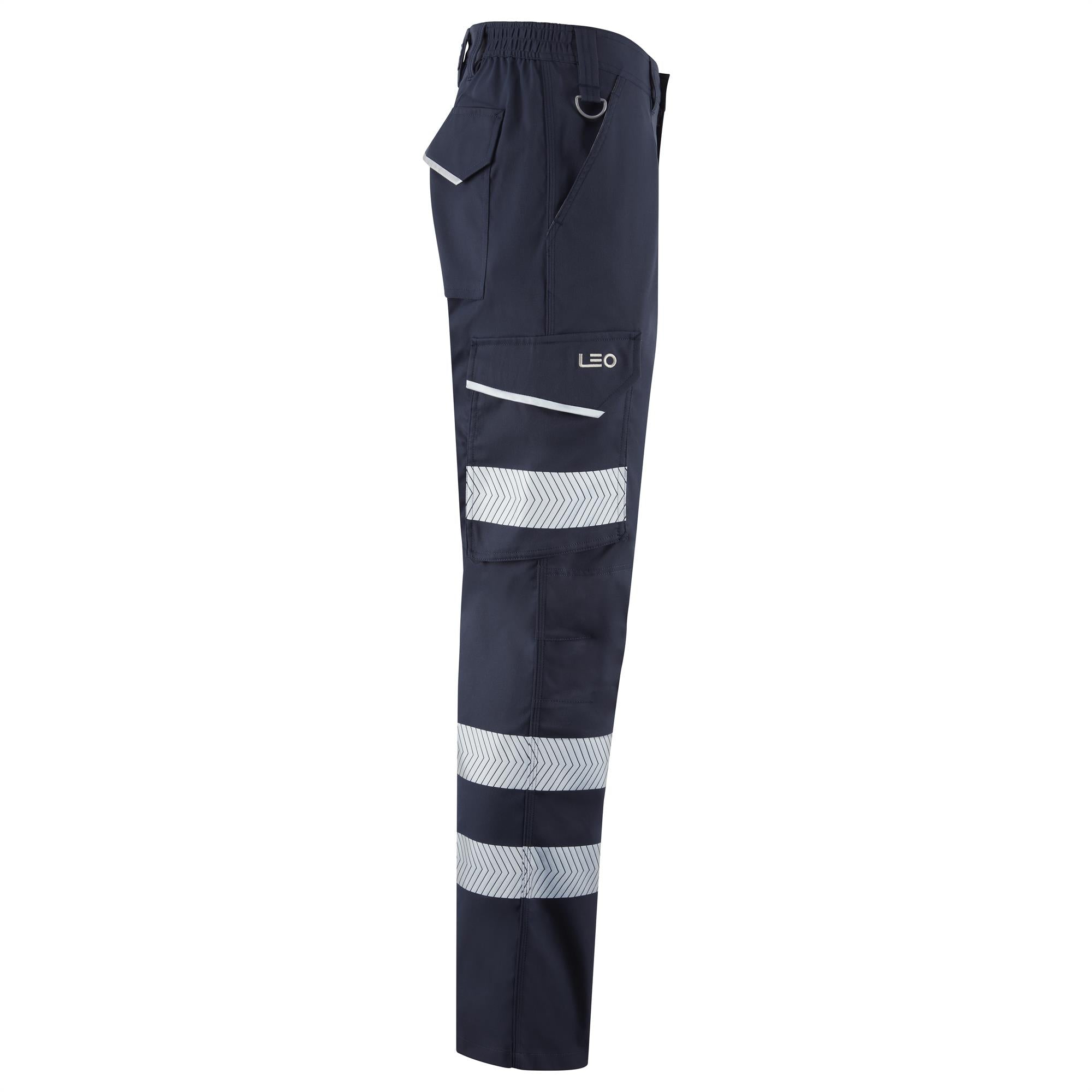 Leo Winsford EcoViz navy blue high visibility stretch work cargo trousers