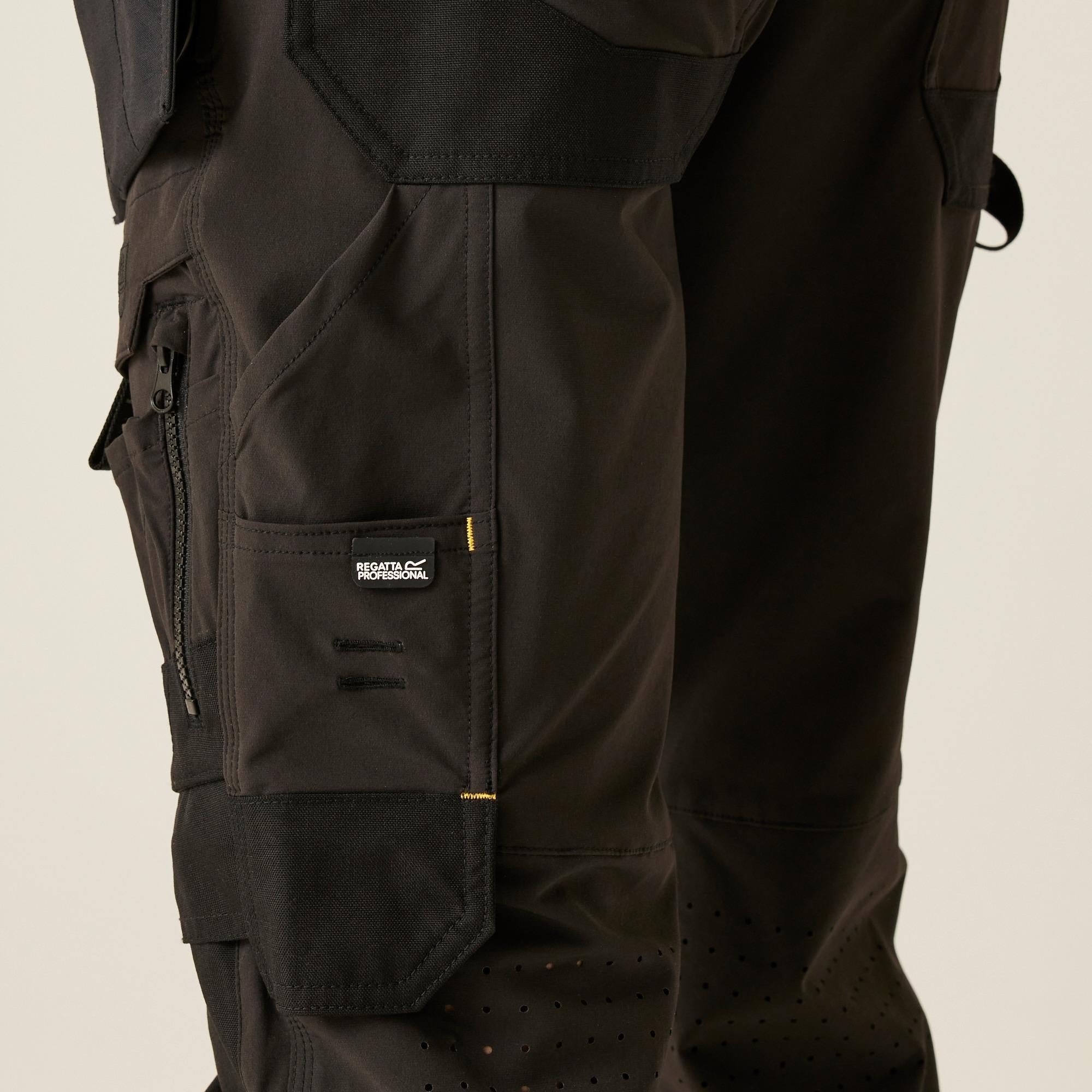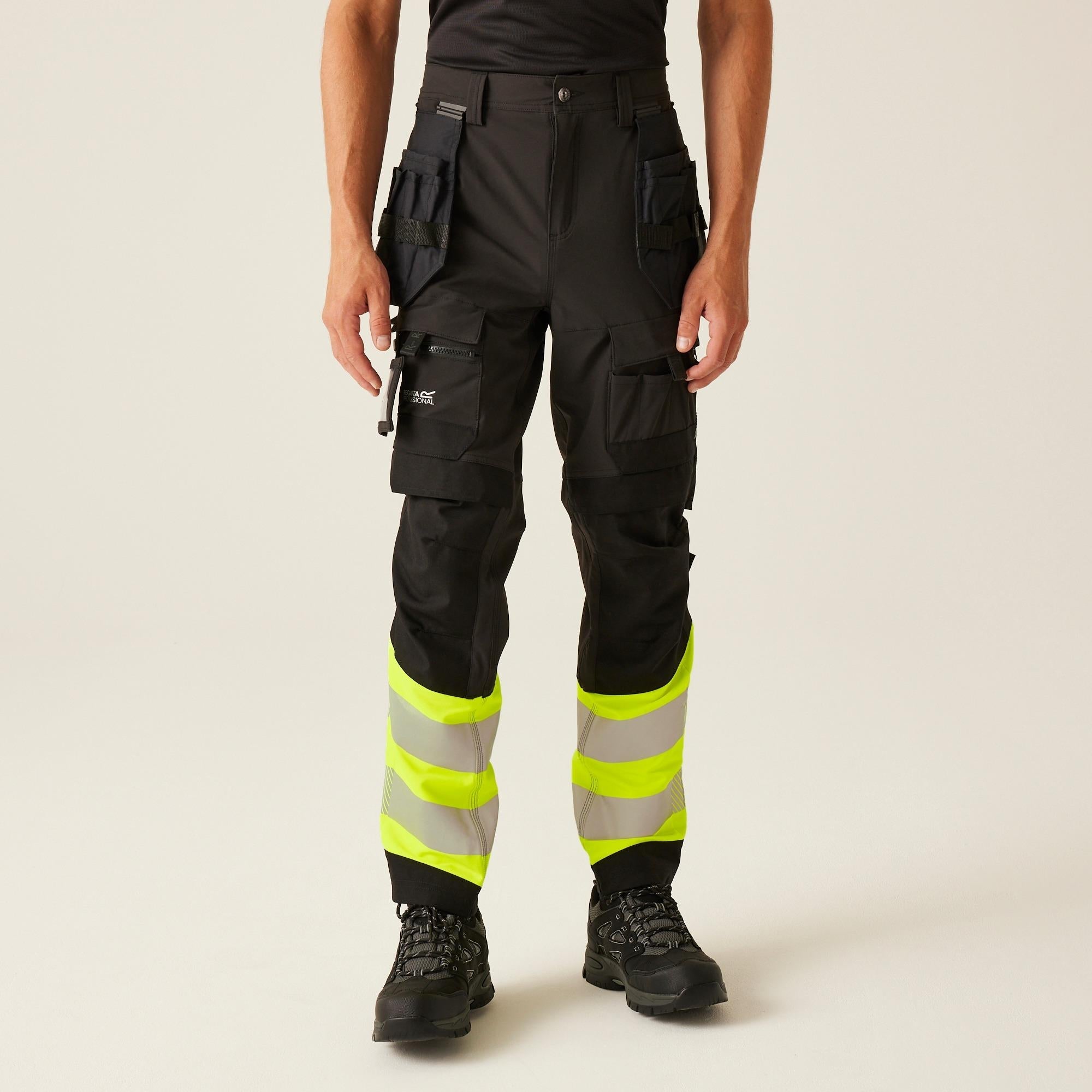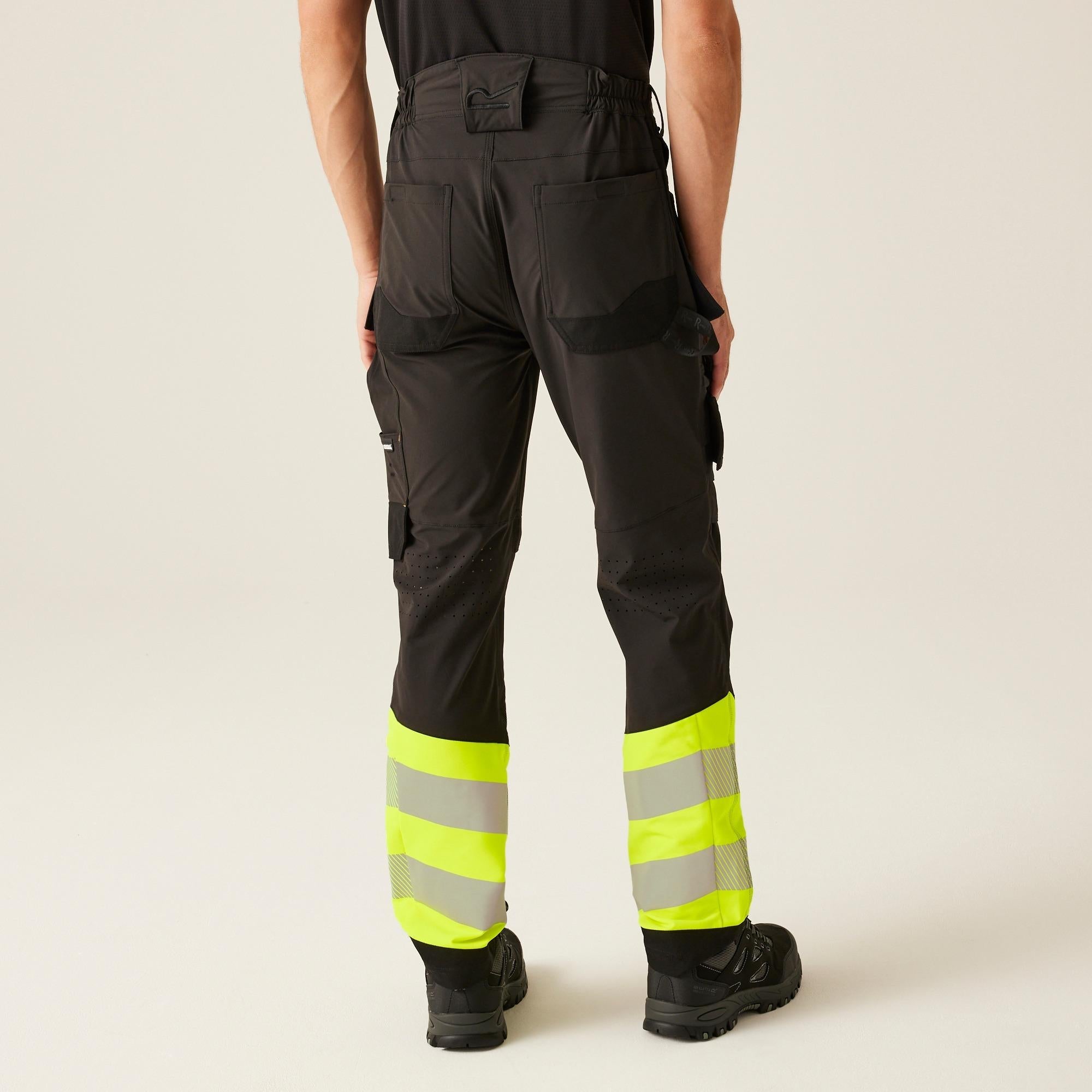 Regatta Hi-Vis X-Pro black/yellow holster slim fit stretch work trousers #TRJ480