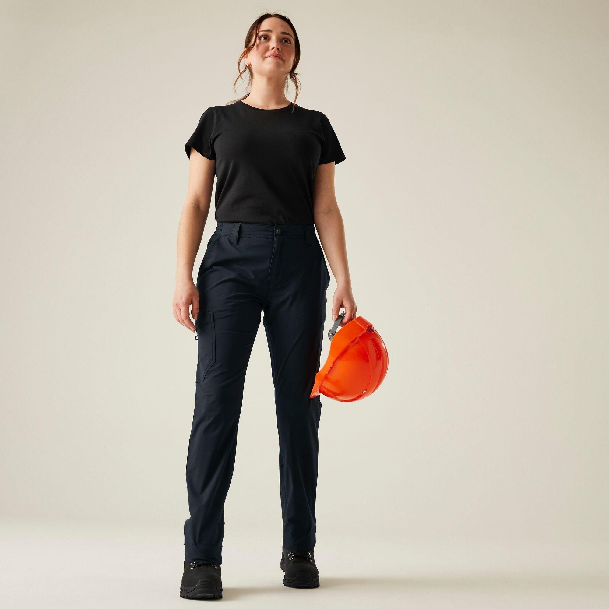 Regatta Pro Action Stretch womens navy blue multi pocket work trousers TRJ627