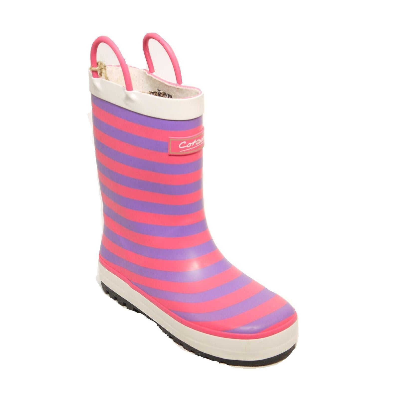 Cotswold Captain pink stripe kid's pull handles waterproof wellington boot